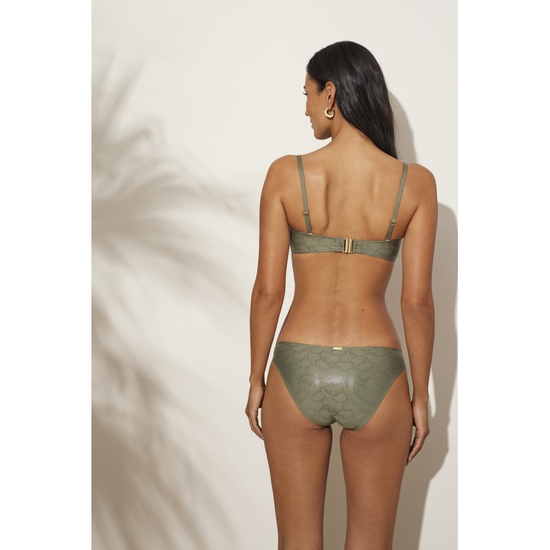 Bandeau bikini top with removable cup and underwire. With removable straps. With a spectacular recycled fabric, this collection has a very special shine that will capture all eyes this season.