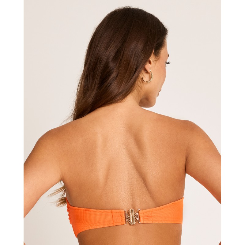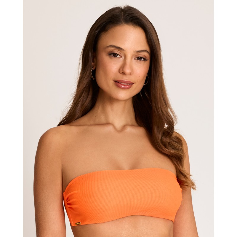 Bandeau bikini top with removable cups and underwire. Its removable straps allow you to customize the look for any occasion, providing a secure fit. Perfect for those seeking comfort. Its solid color and timeless style make it ideal for this season.
