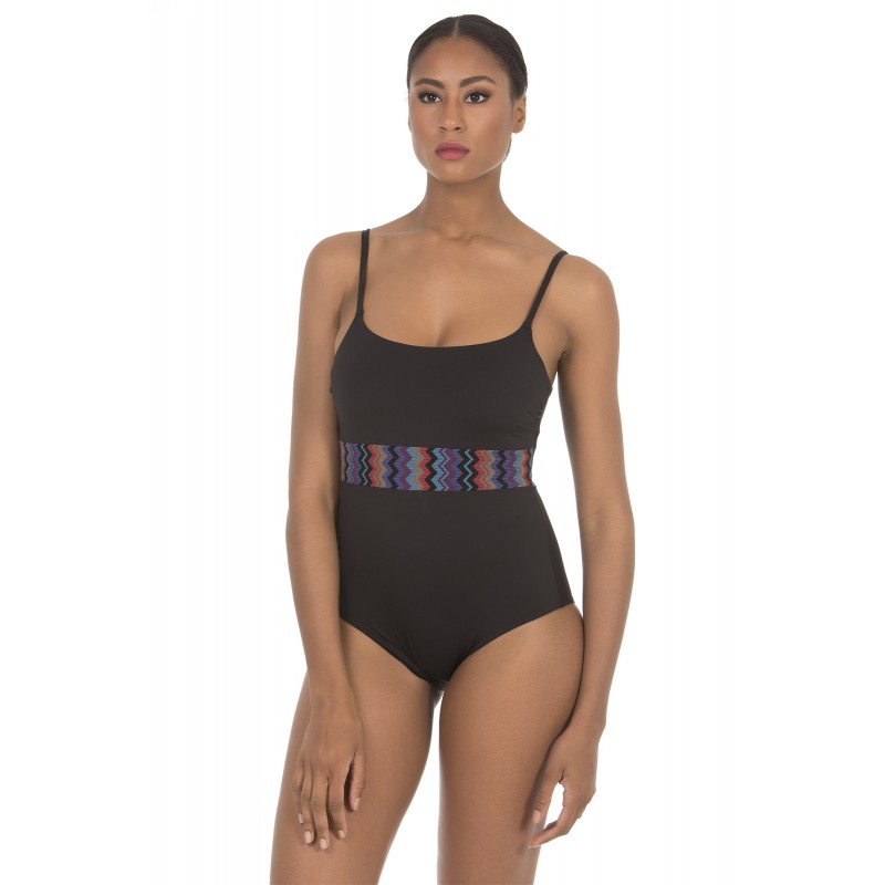 Wireless square neckline swuimsuit. With no cups. Classic and timeless style. With zigzag print. Black.