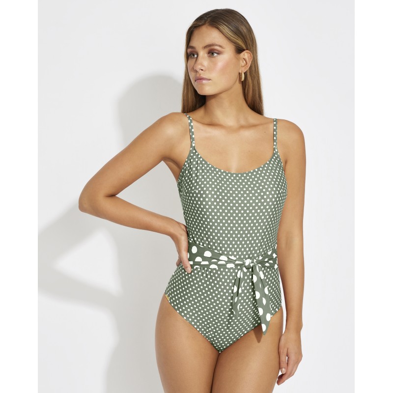 Women's swimsuit with a square neckline. With inner cup, without underwire and crossed straps. With a distinctive design that combines two polka dot prints that makes it a very colorful bathroom piece, ideal for this summer.