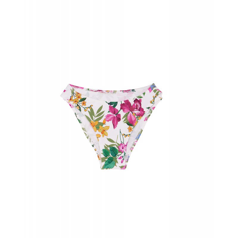 Biquíni de menina. Top decote quadrado com alças cruzadas nas costas e calcinha de corte clássico. Com uma linda estampa floral e colorida, ideal para combinar com toda a família neste verão.