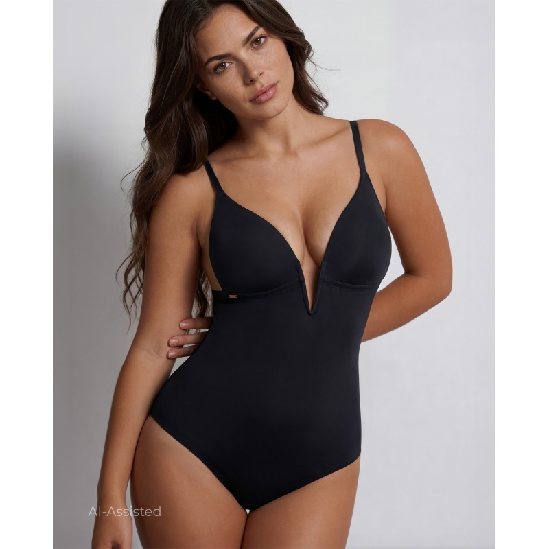 Body lipo effect sem perna que reduz e estiliza a figura, com costas nuas, alças de ombro multiposicionais e decote super pronunciado. Inclui uma abertura ultra-elástica para uso íntimo. Este fato de banho é a solução para o vestido super equipado com que estavaa usar a sua roupa interior. É muito elástico e não marca debaixo da roupa. Reduz o volume, define o contorno, realça o peito, é ideal para decotes pronunciados e permite transportar costas nuas. Vai ser como a tua segunda pele.