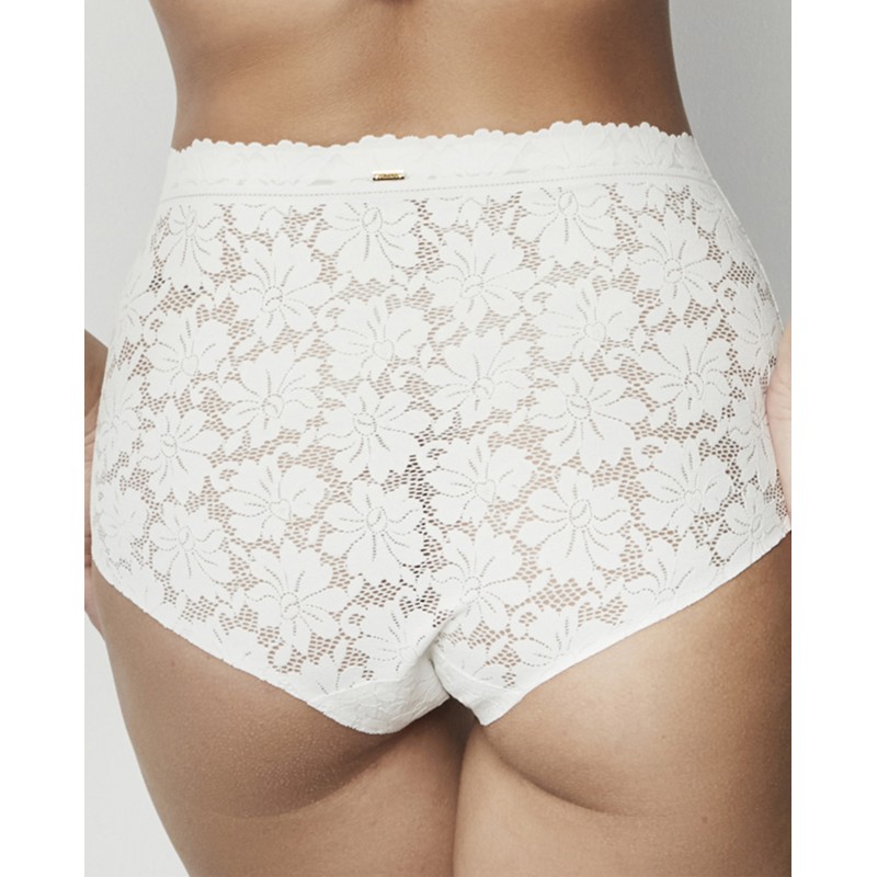 Calcinhas clássicas de cintura subida, nas quais o conforto e a elegância andam de mãos dadas, graças ao seu padrão sem costuras e sem marcas, bem como à elasticidade, combinadas com a renda floral, uma tendência da estação.
