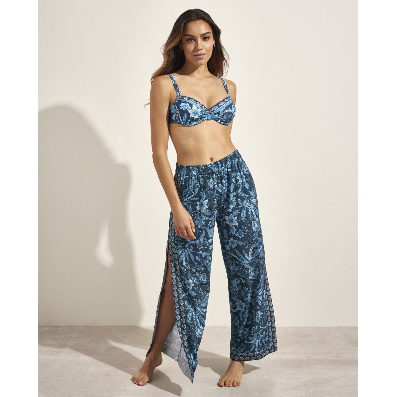 Calça estilo palazzo com rachas laterais. Ouse destacar-se com um design único que alia sofisticação e modernidade graças ao seu estampado inovador e corte irrepreensível. Ideal para completar o seu look de verão.