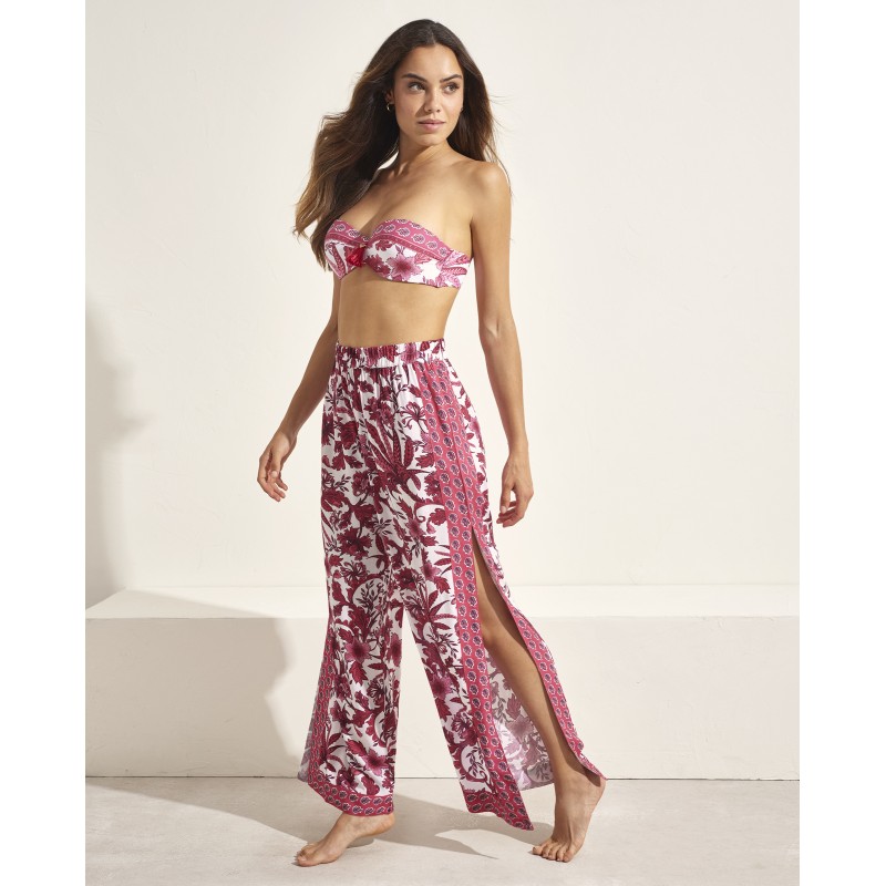 Calça estilo palazzo com rachas laterais. Ouse destacar-se com um design único que alia sofisticação e modernidade graças ao seu estampado inovador e corte irrepreensível. Ideal para completar o seu look de verão.