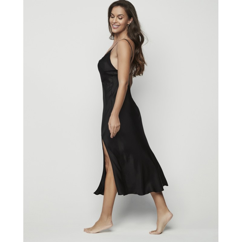 Camisola em lingerie com decote em V pronunciado, costas abertas e alças ajustáveis. Possui forro interior e abertura numa das laterais. É uma peça delicada e sofisticada. A coleção Agatha, à qual pertence, encarna a maturidade e o esplendor da marca, oferecendo peças que não só adornam, como transformam. Uma coleção com charme e carisma.