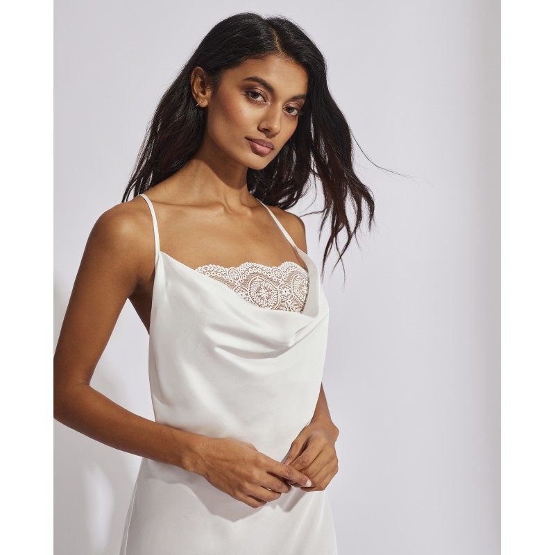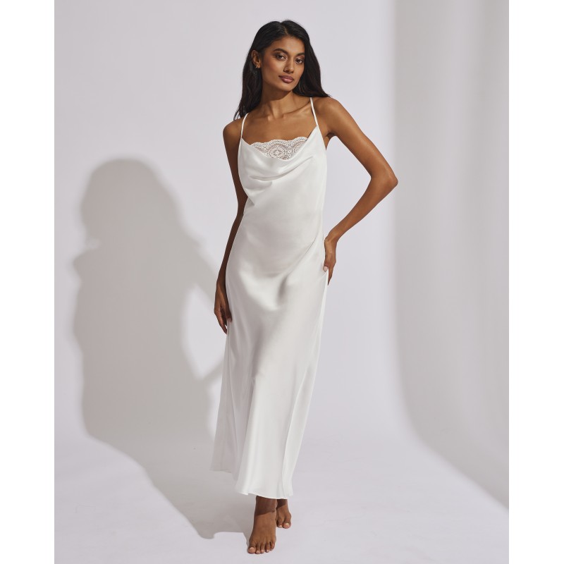 Camisola comprida com alças ajustáveis. O seu design clássico com detalhes em renda confere-lhe um estilo romântico e boémio ao mesmo tempo. Esta peça combina sensualidade, frescura e elegância, ideal para mulheres livres e autênticas.