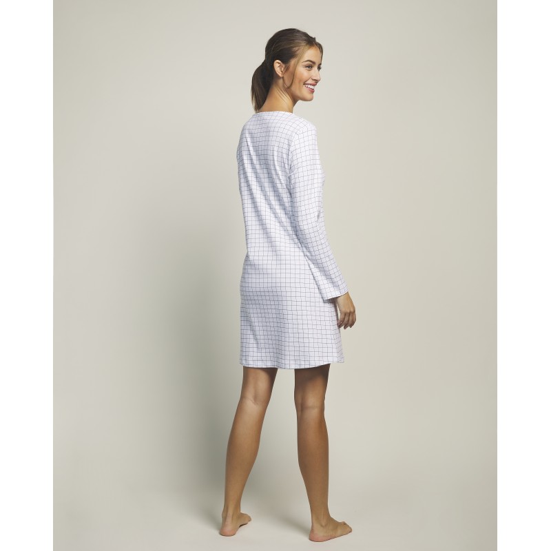 Camisola de manga comprida. Com estampa xadrez e design que garante uma experiência de sono confortável e agradável. Ideal para este inverno.