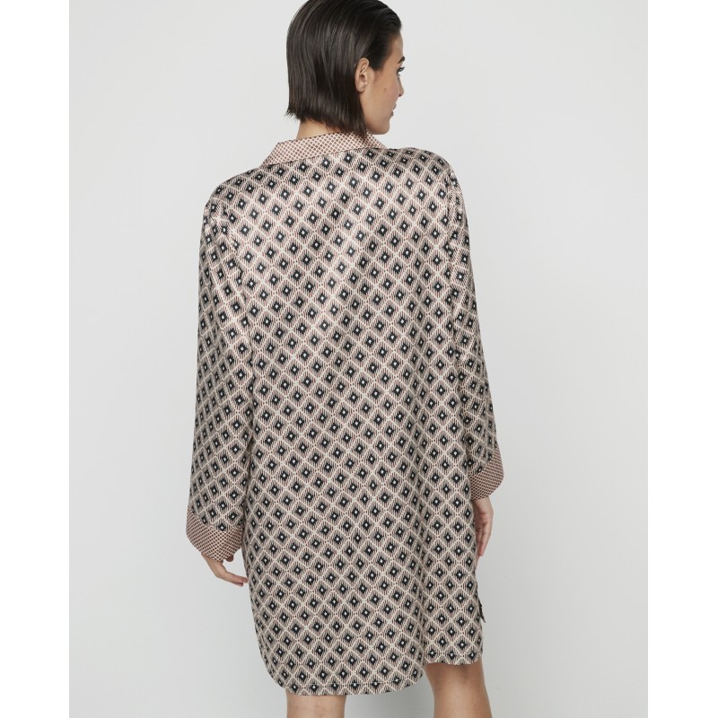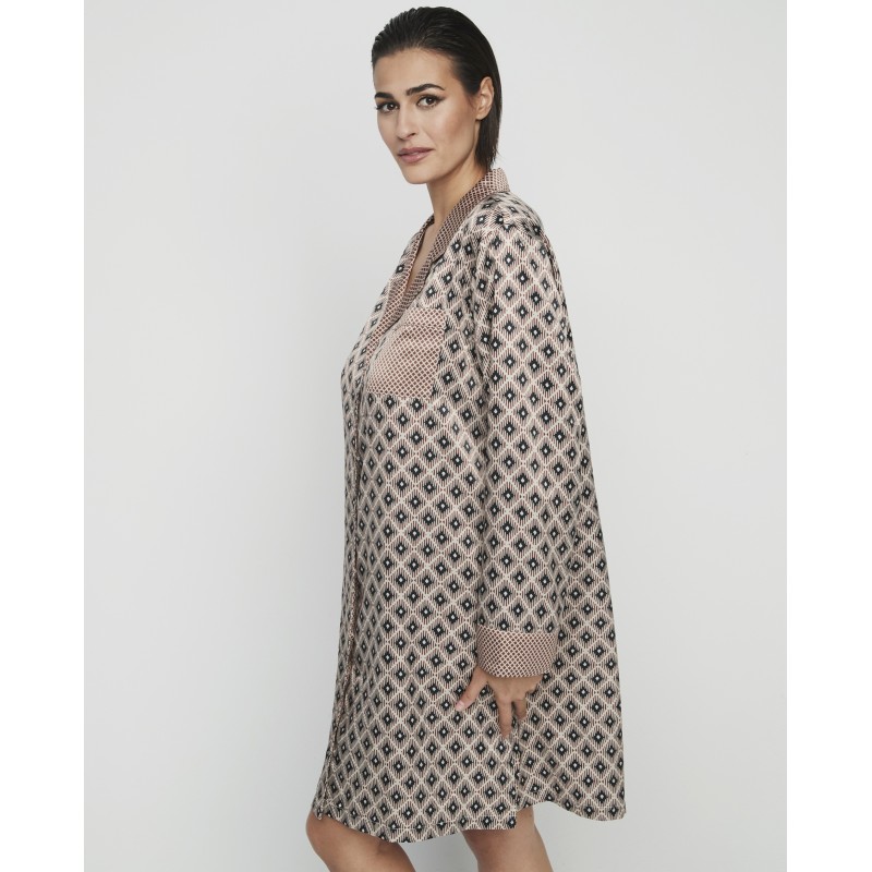 Camisola estilo camisa com mangas e botões frontais até ao joelho. Esta estampa requintada irá adicionar charme e sofisticação a qualquer noite.