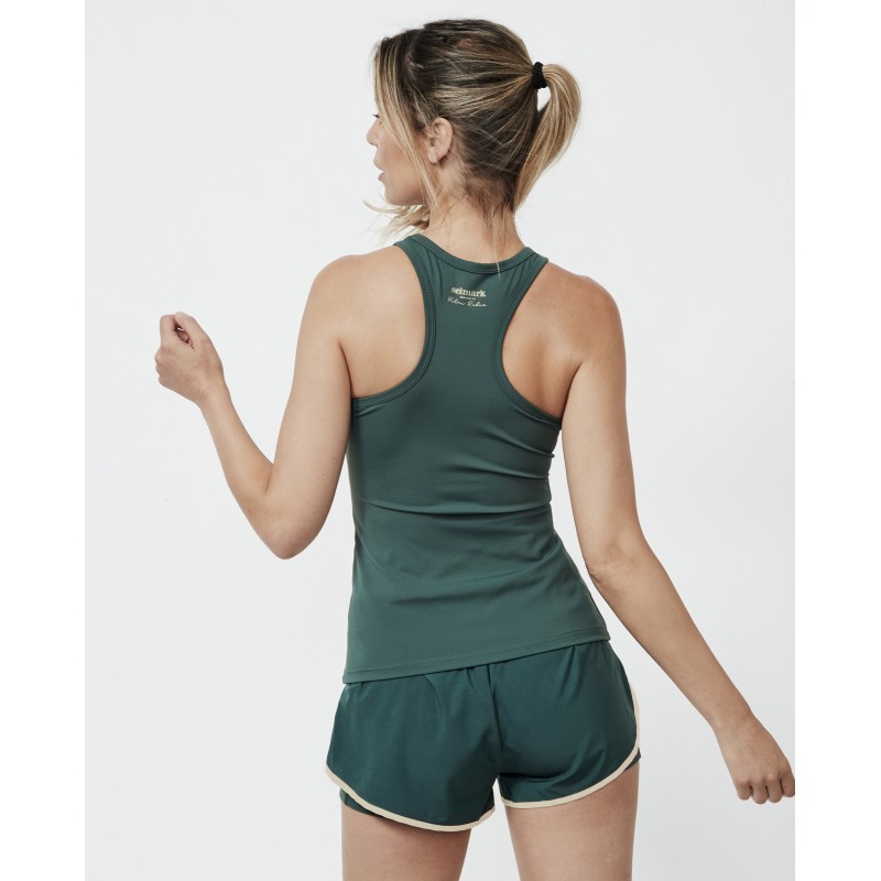 Esta t-shirt faz parte da nova coleção Selmark Tech de Pilar Rubio. É um top comprido, sem mangas e com costas nadador. Ideal para o conforto e liberdade de movimentos durante a atividade física.