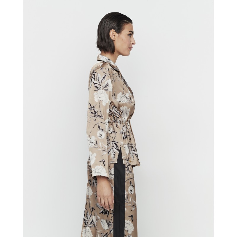 Pijama comprido de senhora de duas peças. Com cintura franzida ajustável. Estampado floral. Uma peça elegante e sofisticada. A coleção Malitzia, à qual pertence, representa uma dança perfeita entre o delicado e o ousado.