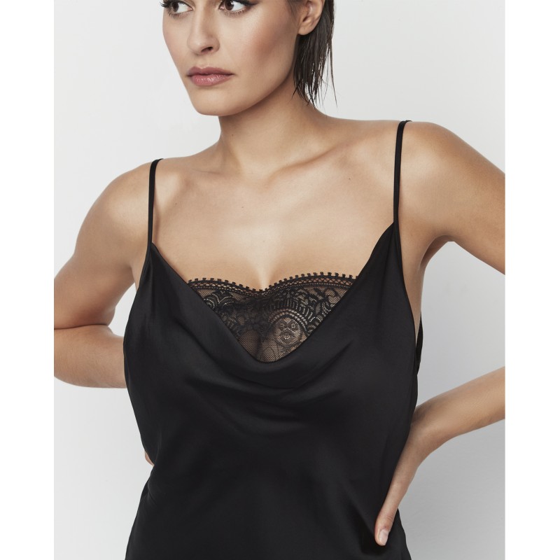 Camisola curta com alças ajustáveis. A combinação de rendas delicadas e camadas subtis de transparência transmite uma imagem de sofisticação e glamour irresistíveis. A sua estética marcante é uma homenagem às noites em que a elegância e a sensualidade são o centro das atenções. Esta peça pertence à coleção Aurum, criada em colaboração com Pilar Rubio para celebrar o nosso 50º aniversário.