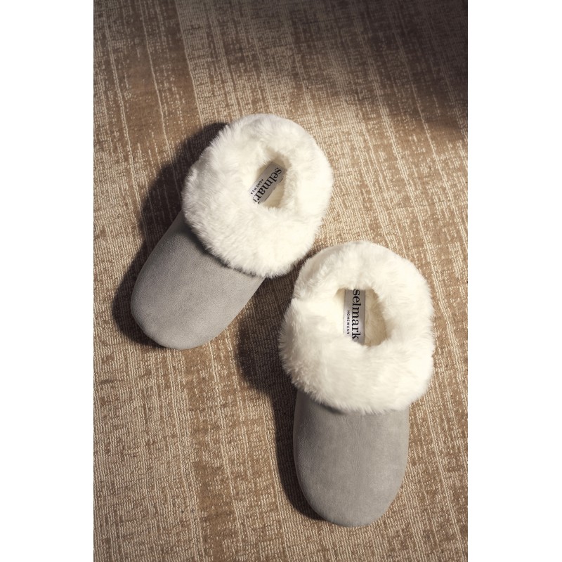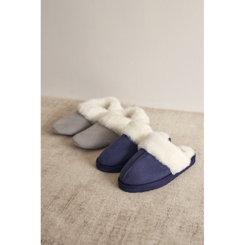 Par de chinelos de sola fechada. Ideal para manter os pés quentinhos e confortáveis ​​neste inverno.