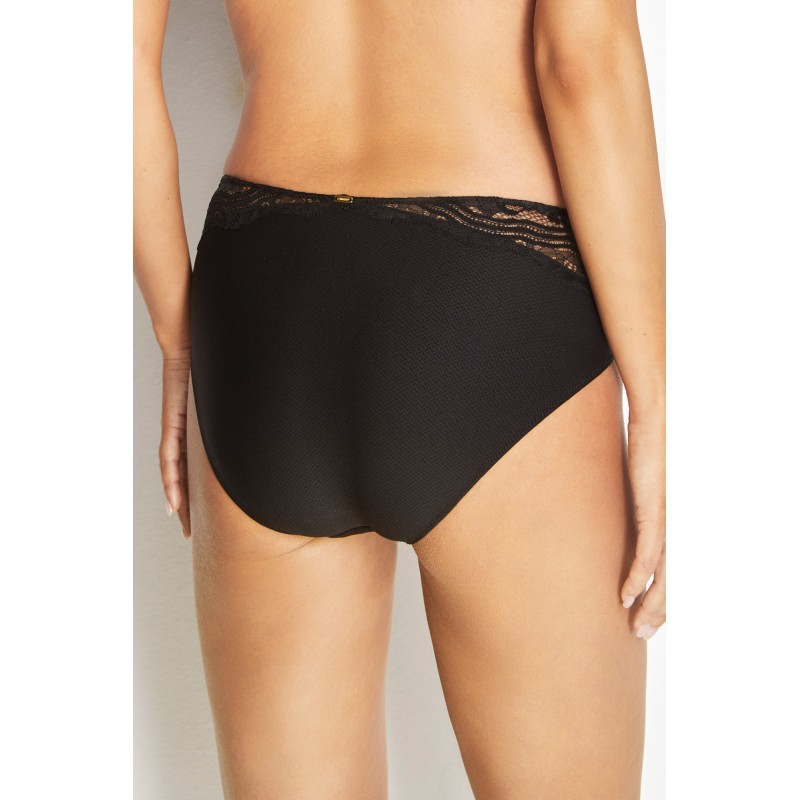 Cueca clássica de cintura alta com uma estética romântica e rústica. Seus detalhes feitos à mão e renda fazem dela uma peça com um design único, atraente e feminino.