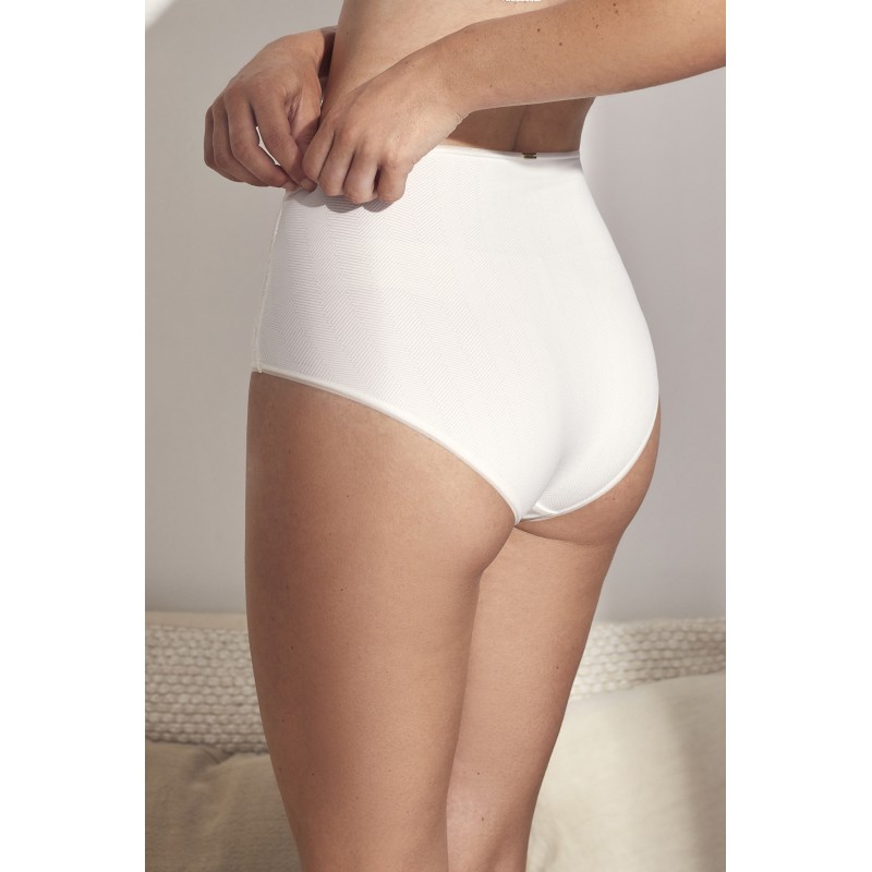 Cueca clássica de cintura alta com uma estética muito sensual e feminina graças aos seus detalhes de renda.