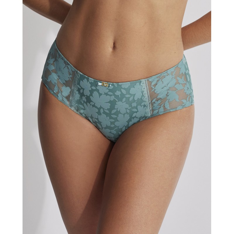 Cueca alta com delicados detalhes em renda. Esta peça é uma promessa de momentos especiais, um toque de mistério e sedução que transforma o poder da feminilidade na sua forma mais refinada e cativante.
