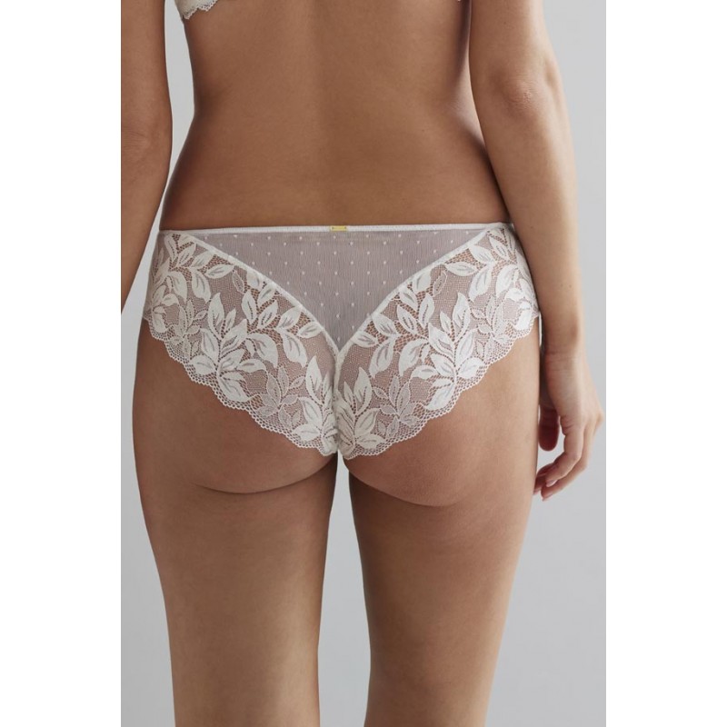 Cueca com corte biquíni com estética e caráter muito atraentes. Sua renda floral o torna um design muito atual e jovem.