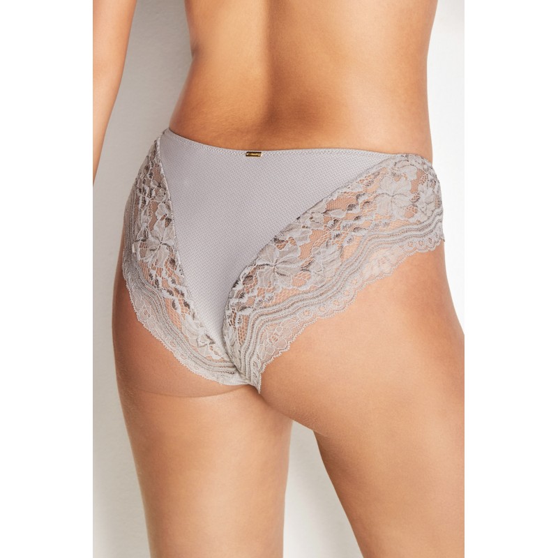 Cueca com corte biquíni com uma estética romântica e rústica. Seus detalhes feitos à mão e renda fazem dela uma peça com um design único, atraente e feminino.
