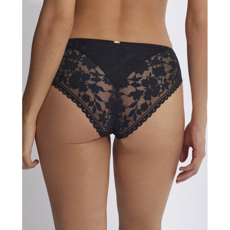 Cueca bikini com delicados detalhes em renda. Esta peça é uma promessa de momentos especiais, um toque de mistério e sedução que transforma o poder da feminilidade na sua forma mais refinada e cativante.