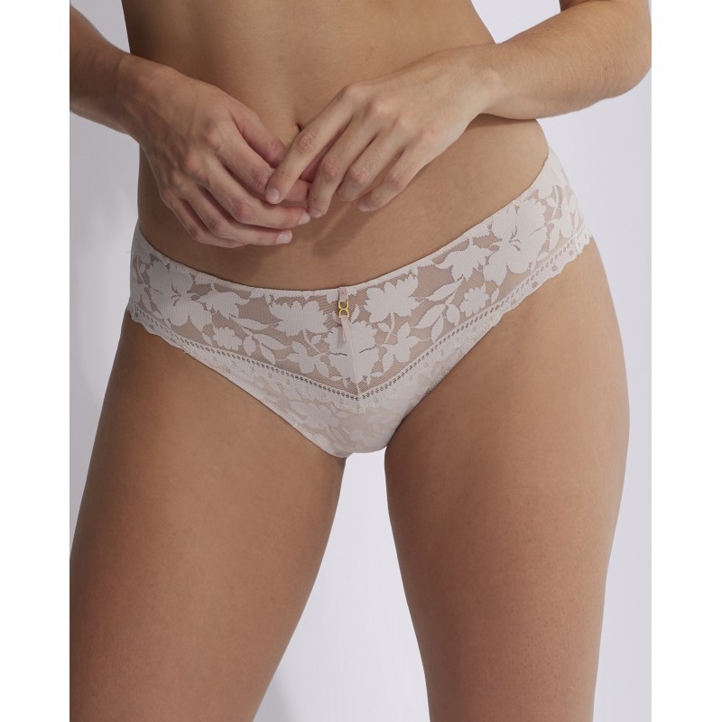 Cueca bikini com delicados detalhes em renda. Esta peça é uma promessa de momentos especiais, um toque de mistério e sedução que transforma o poder da feminilidade na sua forma mais refinada e cativante.