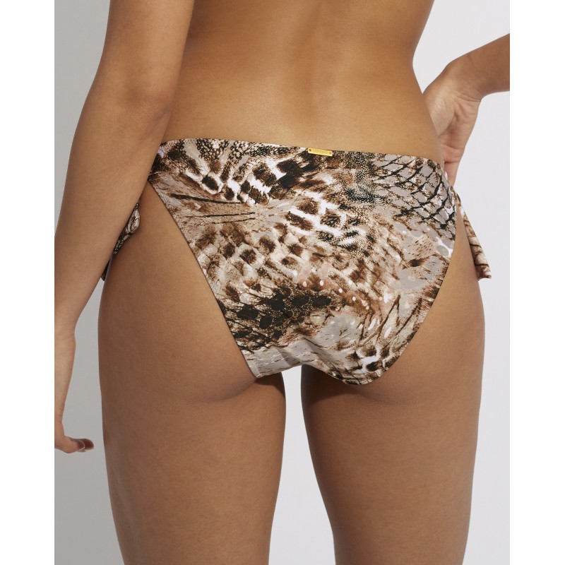 Cueca de biquíni de cintura baixa com nós ajustáveis. Sua estampa selvagem e ousada irá conectar você com a natureza e a beleza da fauna africana. Com detalhes que proporcionam um toque elegante e sofisticado, farão você se sentir único e poderoso.