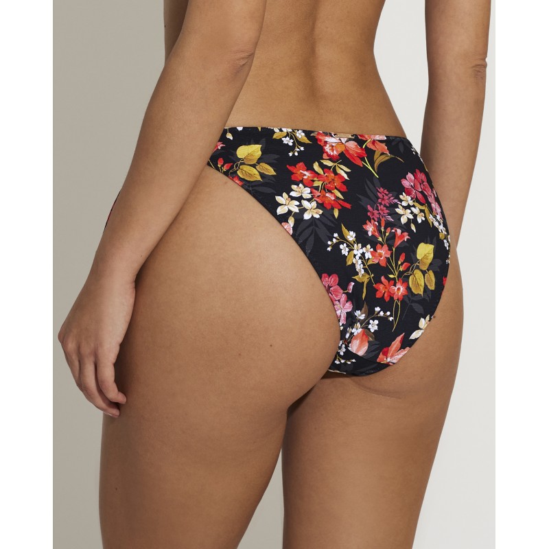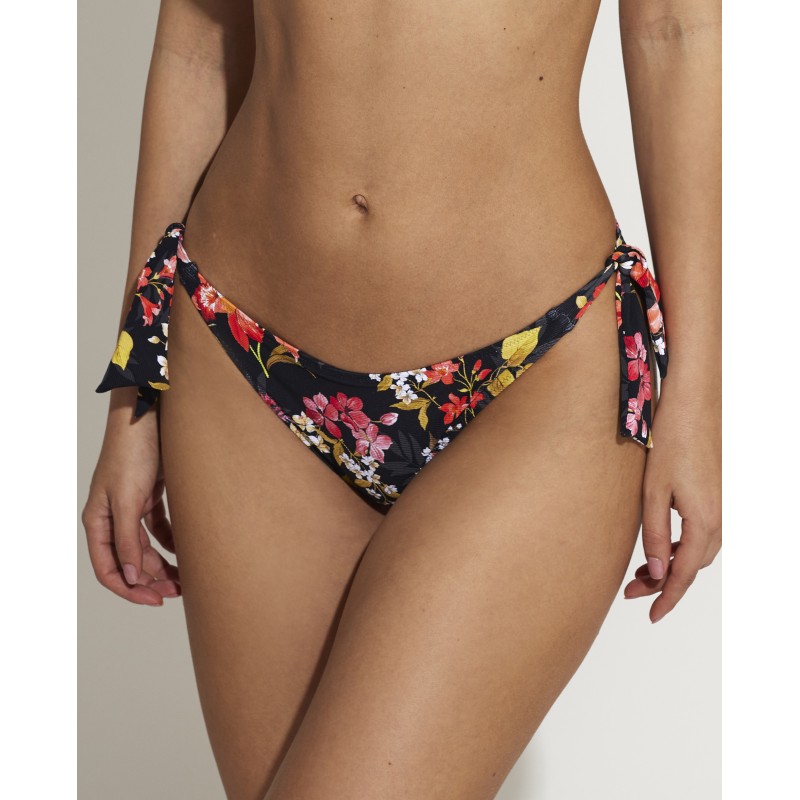 Cueca de biquíni de cintura baixa com nós ajustáveis. Este design floral e colorido é perfeito para parecer radiante e vibrante na praia ou piscina neste verão.