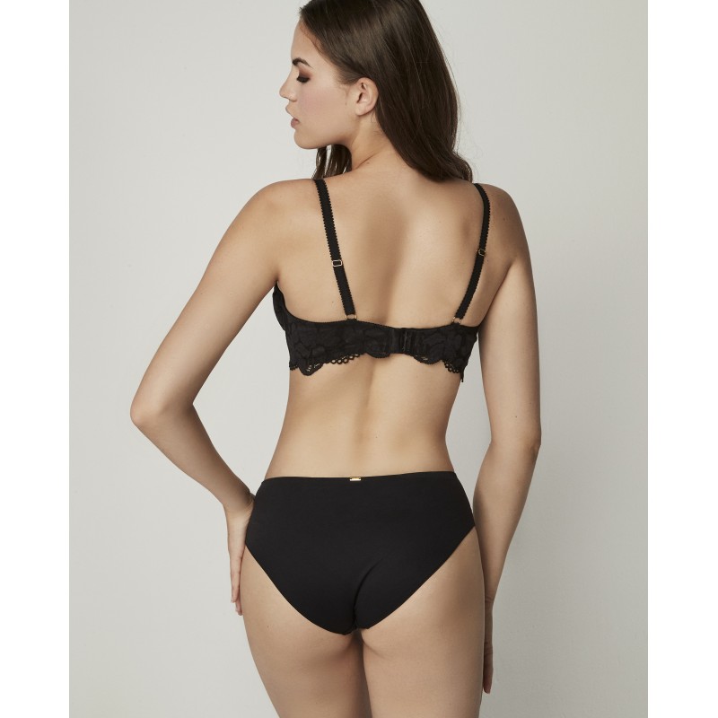 Cueca de biquíni de corte clássico com renda floral combinada com piqué, que proporciona suavidade, criando linhas limpas e detalhes requintados. O elástico na cintura não marca. Uma peça de lingerie sofisticada onde a elegância e o conforto andam de mãos dadas. A coleção Federica, à qual pertence, caracteriza-se por formas e estruturas trabalhadas com precisão para melhorar os contornos de cada mulher e aumentar a sua confiança, celebrando o individualidade e feminilidade no seu melhor.