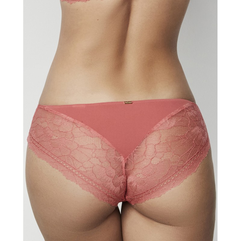 Cueca biquíni clássica combinada com renda floral que continua da frente para trás, o que confere suavidade e detalhes requintados à peça. O elástico na cintura não marca. É uma peça delicada e sofisticada. A coleção Agatha, à qual pertence, encarna a maturidade e o esplendor da marca, oferecendo peças que não só adornam, como transformam. Uma coleção com charme e carisma.