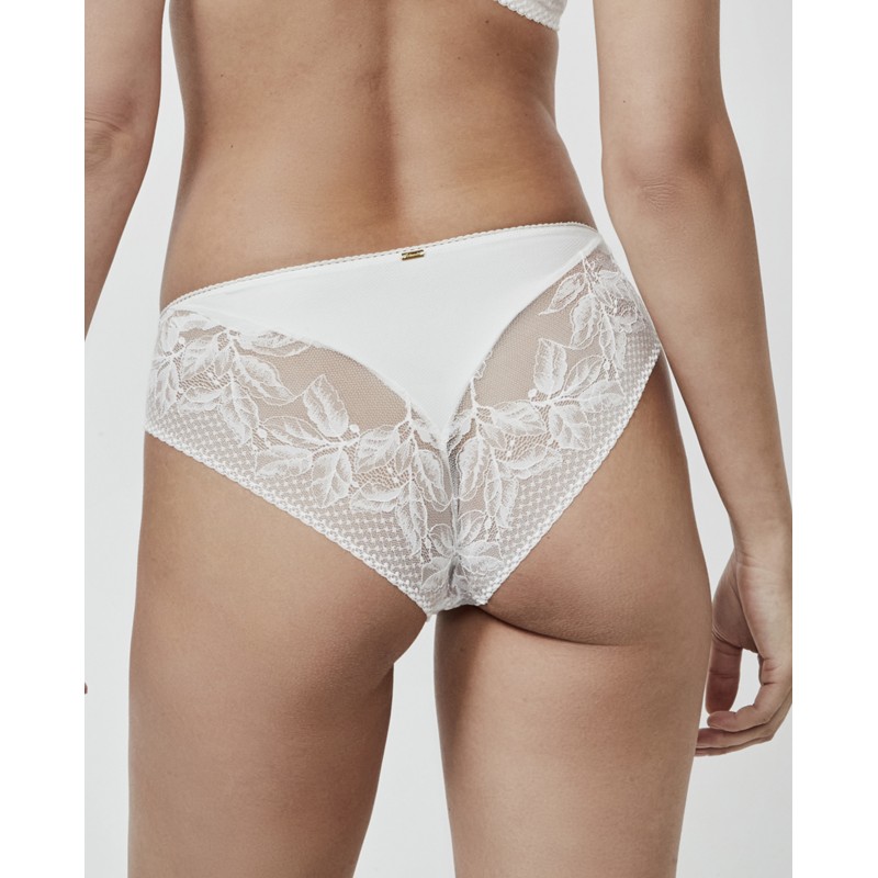 Cuecas de biquíni com corte clássico e renda floral na frente e nas costas, que acrescenta suavidade e detalhes requintados à peça. O cós elástico proporciona um efeito que não marca. A coleção Malitzia, à qual pertence, representa uma dança perfeita entre o delicado e o ousado.