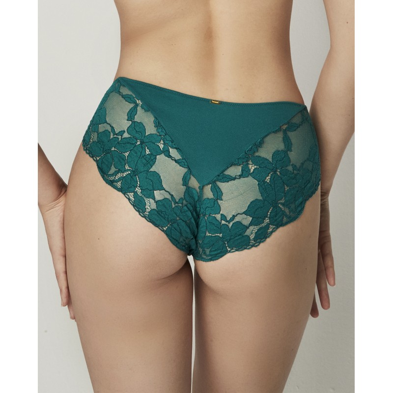 Cueca de biquíni de corte clássico com renda floral combinada com piqué que continua da frente para trás, proporcionando suavidade criando linhas limpas e detalhes requintados. O elástico na cintura não marca. Uma peça de lingerie sofisticada onde a elegância e o conforto andam de mãos dadas. A coleção Federica, à qual pertence, caracteriza-se por formas e estruturas trabalhadas com precisão paramelhorar os contornos de cada mulher e aumentar a sua confiança, celebrando oindividualidade e feminilidade no seu melhor.