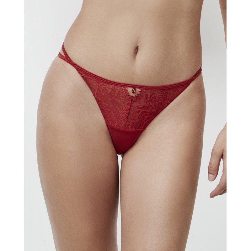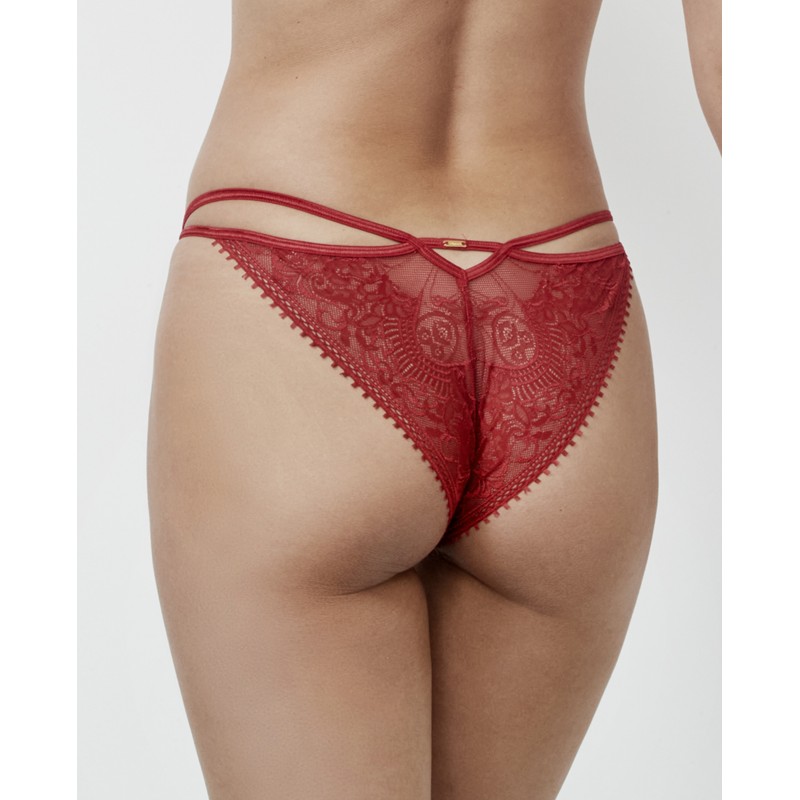 Cueca brasileira de renda. O seu estilo ousado e refinado capta a essência da sofisticação e do glamour. Esta peça é uma homenagem às noites que marcam. O seu design pertence à coleção Aurum, criada em colaboração com Pilar Rubio para celebrar o nosso 50º aniversário.