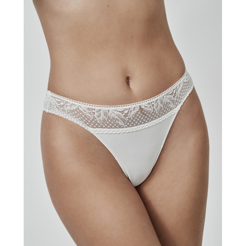 Cuecas com corte brasileiro e renda floral que se estende da frente para trás, acrescentando suavidade e detalhes requintados à peça. O cós elástico proporciona um efeito que não marca. A coleção Malitzia, à qual pertence, representa uma dança perfeita entre o delicado e o ousado.