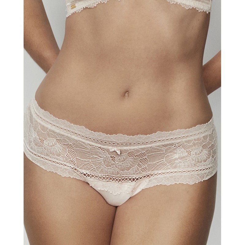 Cueca de corte culotte com renda floral na frente e nas costas, que confere suavidade e detalhes requintados à peça. O elástico na cintura não marca. É uma peça delicada e sofisticada. A coleção Agatha, à qual pertence, encarna a maturidade e o esplendor da marca, oferecendo peças que não só adornam, como transformam. Uma coleção com charme e carisma.
