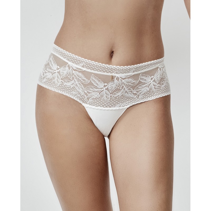 Cuecas com corte culotte e renda floral na frente e nas costas, que acrescenta suavidade e detalhes requintados à peça. O cós elástico proporciona um efeito que não marca. A coleção Malitzia, à qual pertence, representa uma dança perfeita entre o delicado e o ousado.