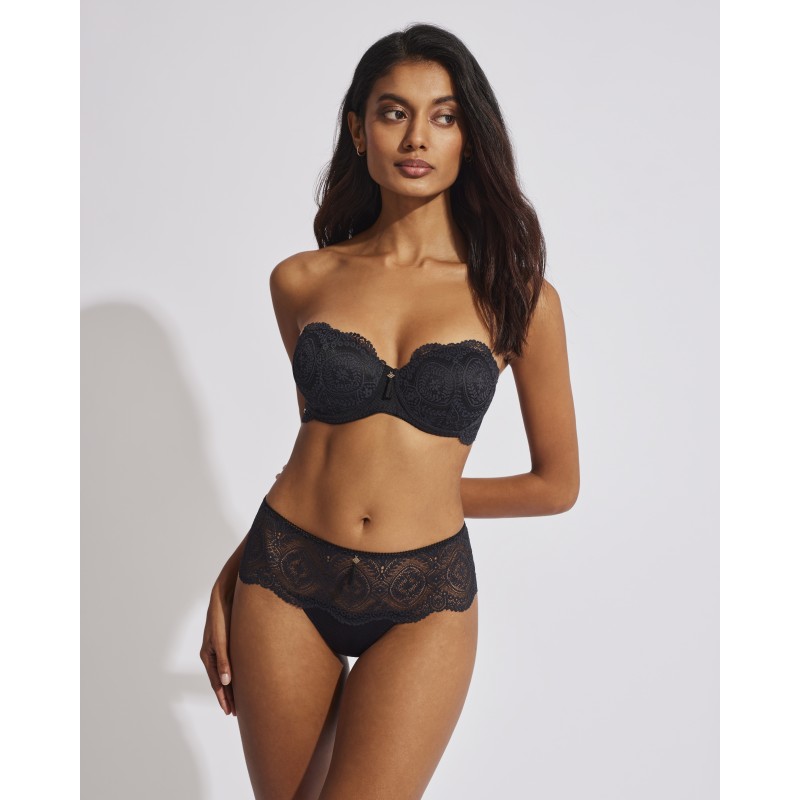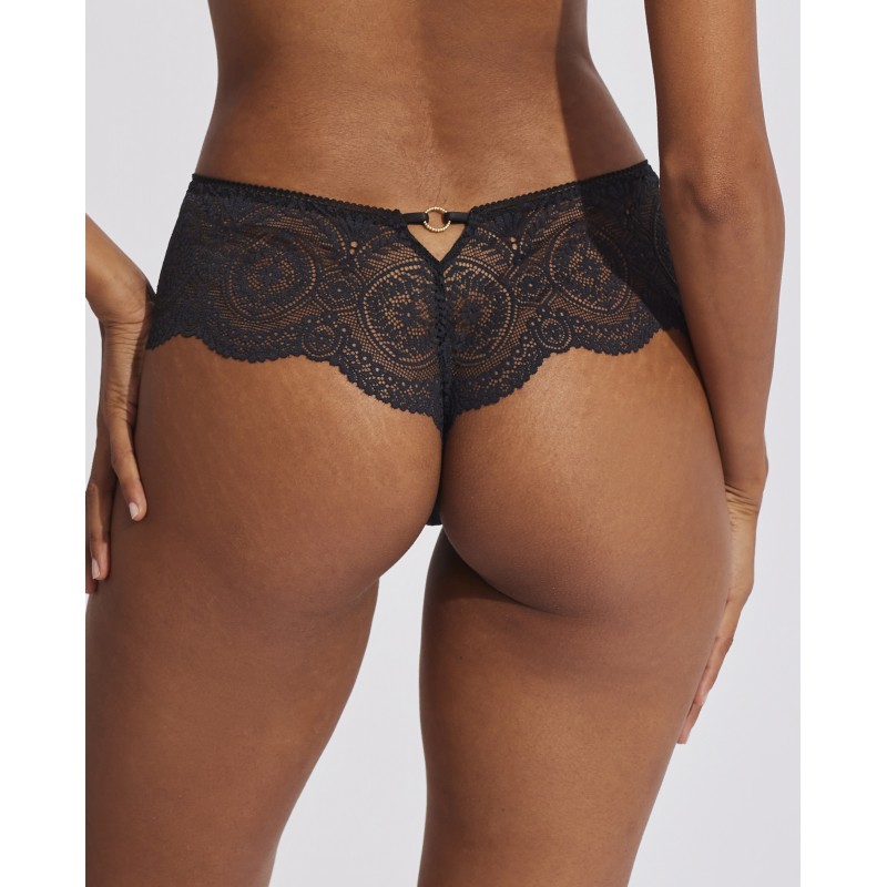 Culotte tanga. O seu espetacular desenho em renda confere-lhe um estilo romântico e boémio ao mesmo tempo. Esta peça combina sensualidade, frescura e elegância, ideal para mulheres livres e autênticas.