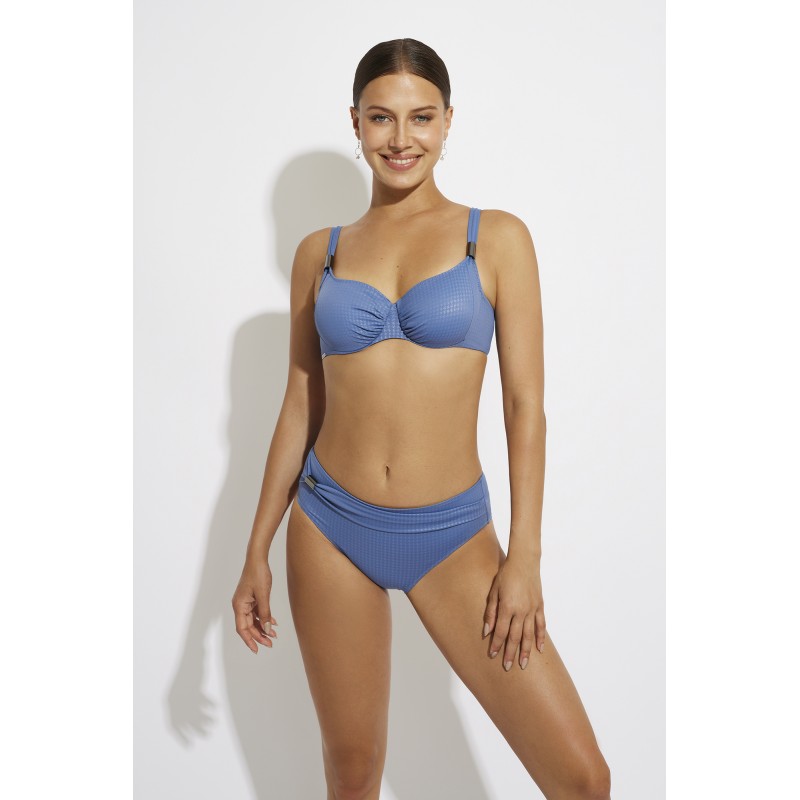 Cuenca de bikini de cintura alta com corte clássico. Com um detalhe que traz elegância a esta peça. Uma alternativa ideal entre os seus fatos de banho.