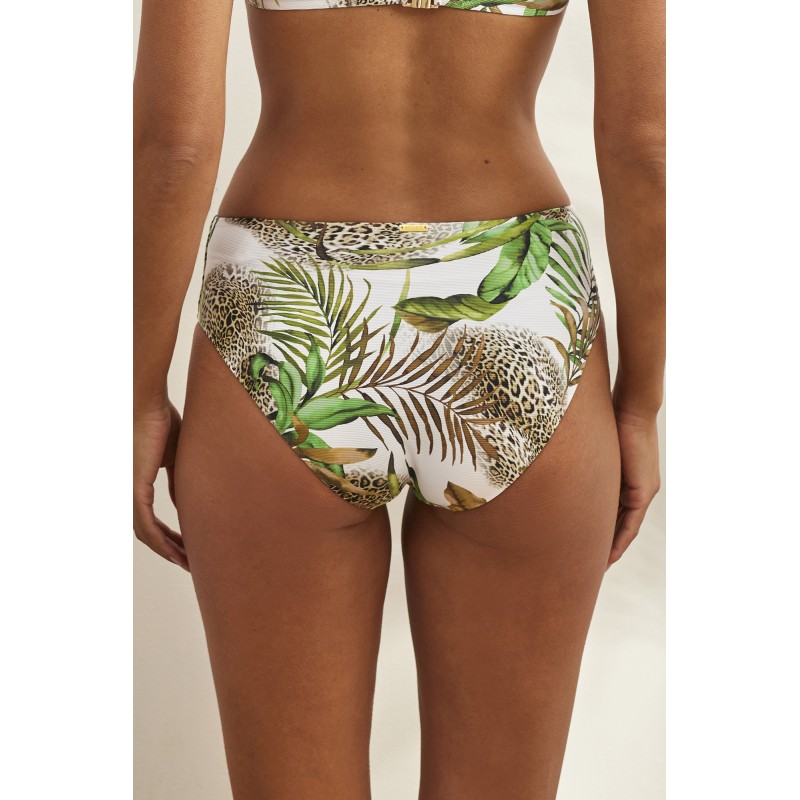 Cuenca bikini de cintura alta com corte clássico. Apresentando uma estampa tropical selvagem inspirada no paraíso. Ideal para esta estação.