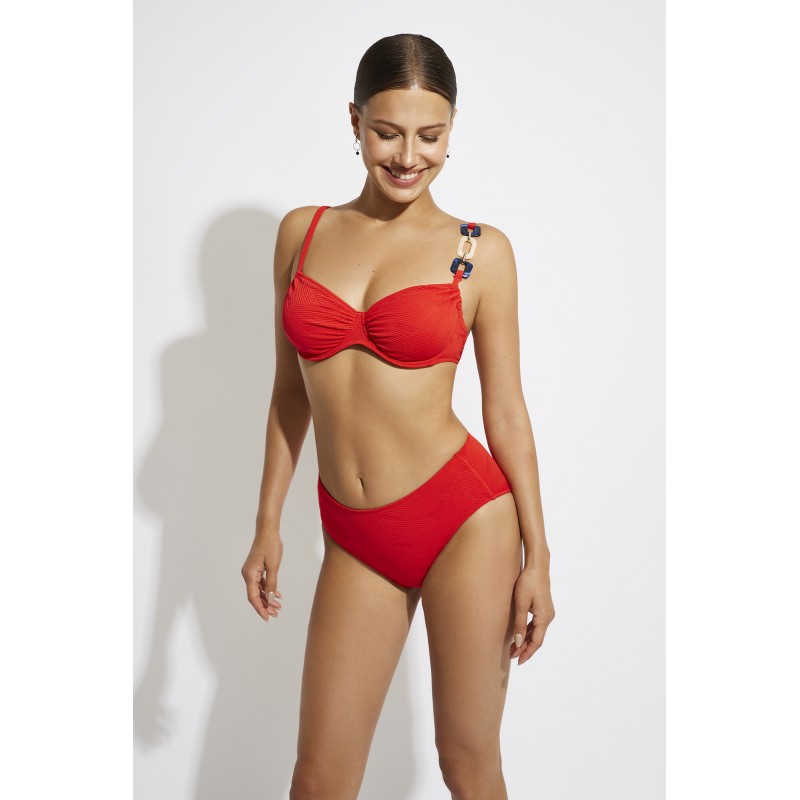 Cuenca de bikini de cintura alta com corte clássico. Confeccionada com tecido reciclado, a peça é uma excelente alternativa entre os trajes de banho neste verão.