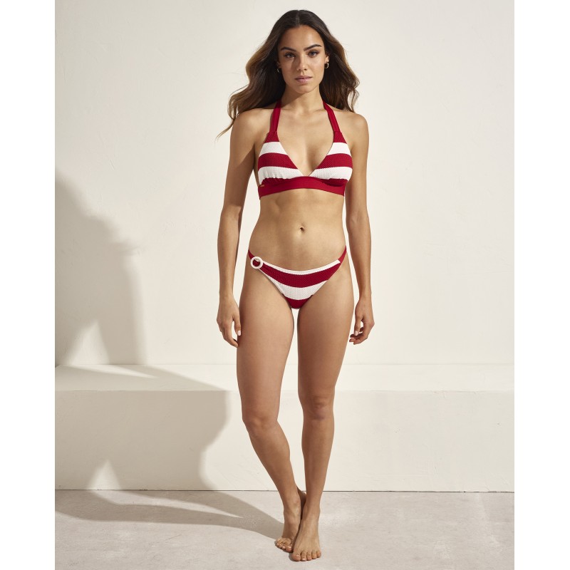 Cueca de biquíni de cintura baixa com atilhos laterais. O seu clássico e intemporal estampado de marinheiro faz dela uma peça essencial em qualquer guarda-roupa de verão.