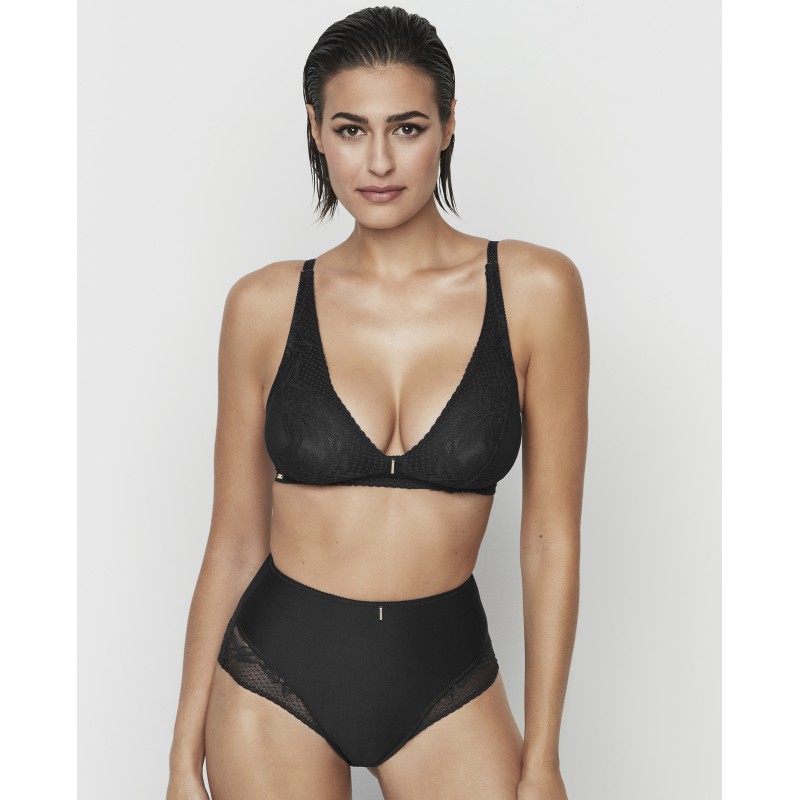 Cueca modeladora de cintura subida com pequenos detalhes em renda floral. Possui tule para suporte. Esta é uma peça sofisticada e cuidadosamente confecionada. A coleção Malitzia, à qual pertence, representa uma dança perfeita entre o delicado e o ousado.