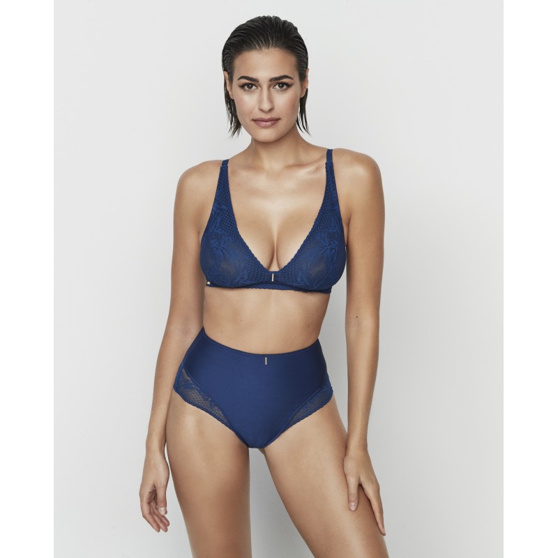 Cueca modeladora de cintura subida com pequenos detalhes em renda floral. Possui tule para suporte. Esta é uma peça sofisticada e cuidadosamente confecionada. A coleção Malitzia, à qual pertence, representa uma dança perfeita entre o delicado e o ousado.