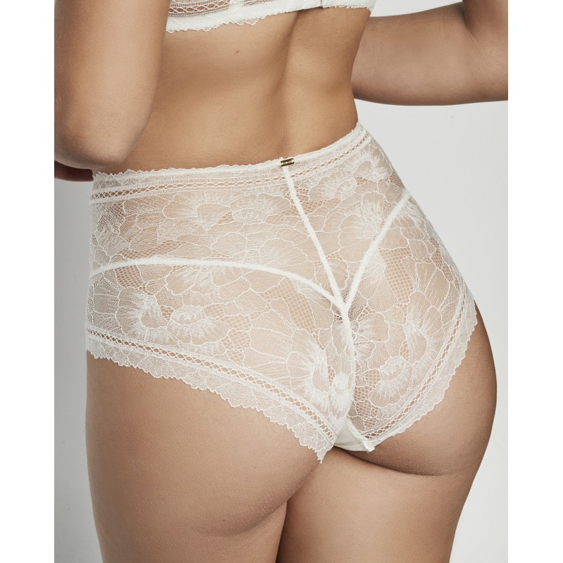 Cueca modeladora de cintura muito subida com pequenos detalhes florais em renda. Possui tule de controlo interno. É uma peça delicada e sofisticada. A coleção Agatha, à qual pertence, encarna a maturidade e o esplendor da marca, oferecendo peças que não só adornam, como transformam. Uma coleção com charme e carisma.