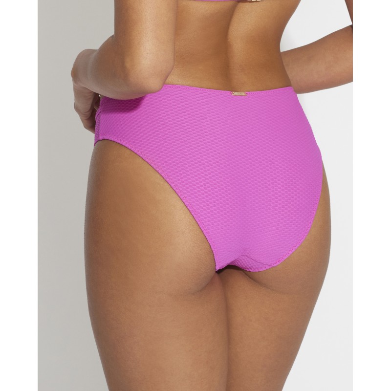 Cueca de biquíni com corte clássico. Este design é simples e intemporal, o que o torna muito versátil e fácil de combinar com diferentes tops de biquíni. Ao mesmo tempo, proporciona um ajuste confortável e seguro.