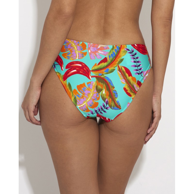 Cueca de biquíni com corte clássico. Com uma estampa colorida e vibrante que vai dar frescor e vida aos seus dias de praia ou piscina.
