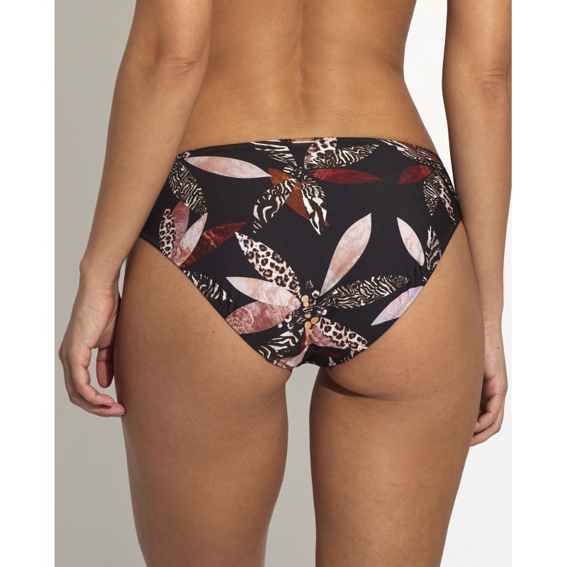 Cueca de biquíni com corte clássico. Sua estampa selva transmite sensação de frescor, alegria e exotismo. É uma peça perfeita para exibir um estilo selvagem e tropical na praia ou na piscina.