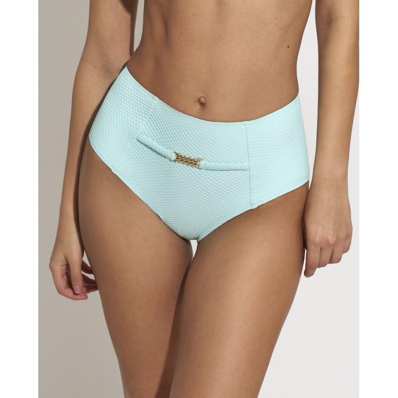 Cueca de biquíni de cintura alta com corte clássico. Este design é simples e intemporal, o que o torna muito versátil e fácil de combinar com diferentes tops de biquíni e nunca sai de moda. Ao mesmo tempo, proporciona um ajuste confortável e seguro.