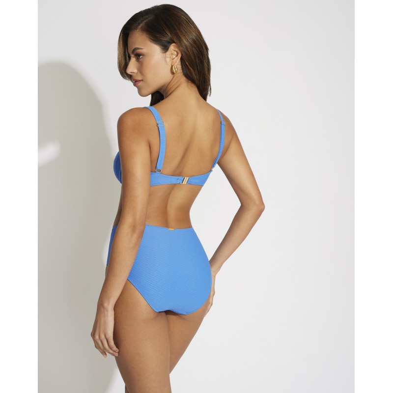 Cueca de biquíni de cintura alta com corte clássico. Este design é simples e intemporal, o que o torna muito versátil e fácil de combinar com diferentes tops de biquíni e nunca sai de moda. Ao mesmo tempo, proporciona um ajuste confortável e seguro.