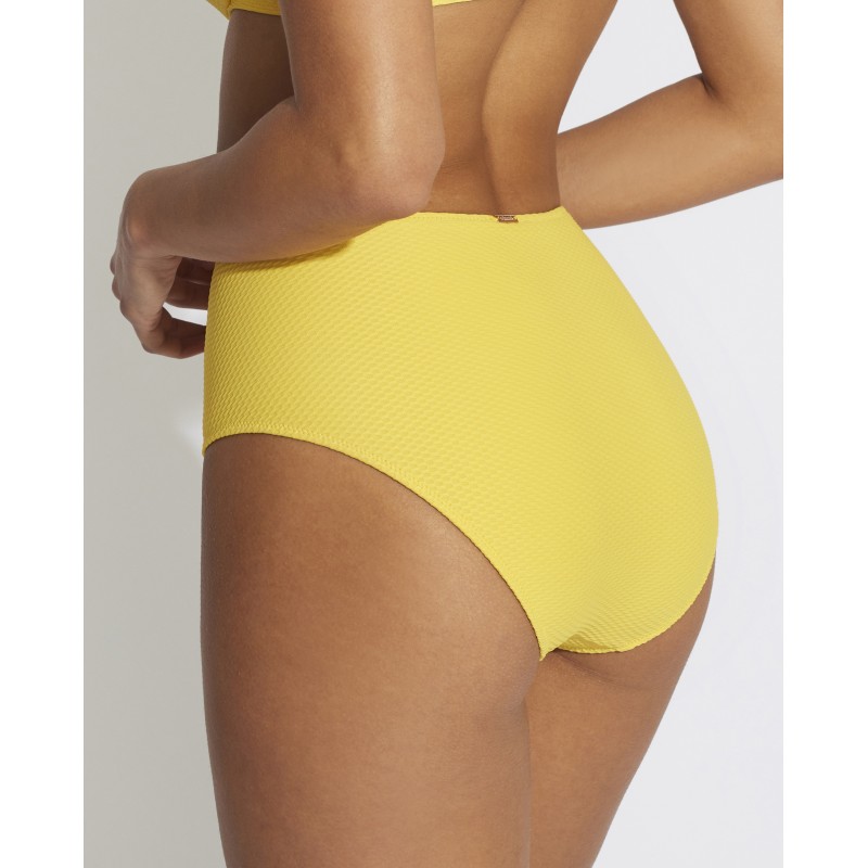 Cueca de biquíni de cintura alta com corte clássico. Este design é simples e intemporal, o que o torna muito versátil e fácil de combinar com diferentes tops de biquíni e nunca sai de moda. Ao mesmo tempo, proporciona um ajuste confortável e seguro.