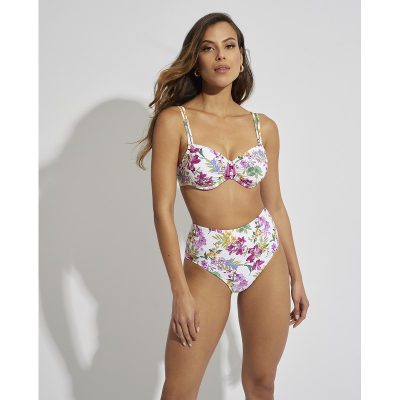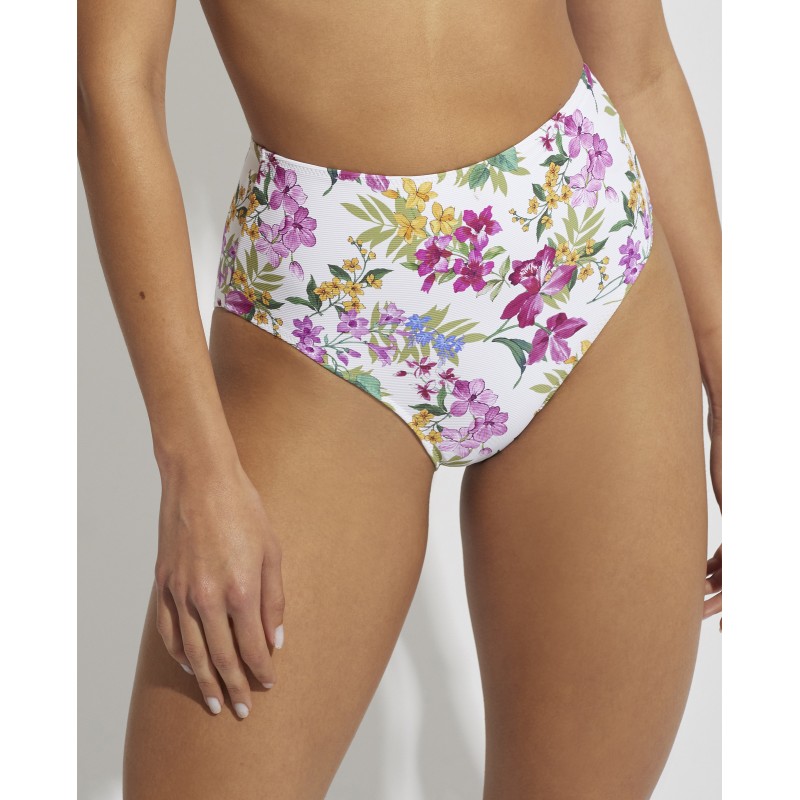 Cueca de biquíni de cintura alta com corte clássico. Este design floral e colorido é perfeito para parecer radiante e vibrante na praia ou piscina neste verão.
