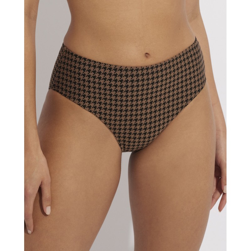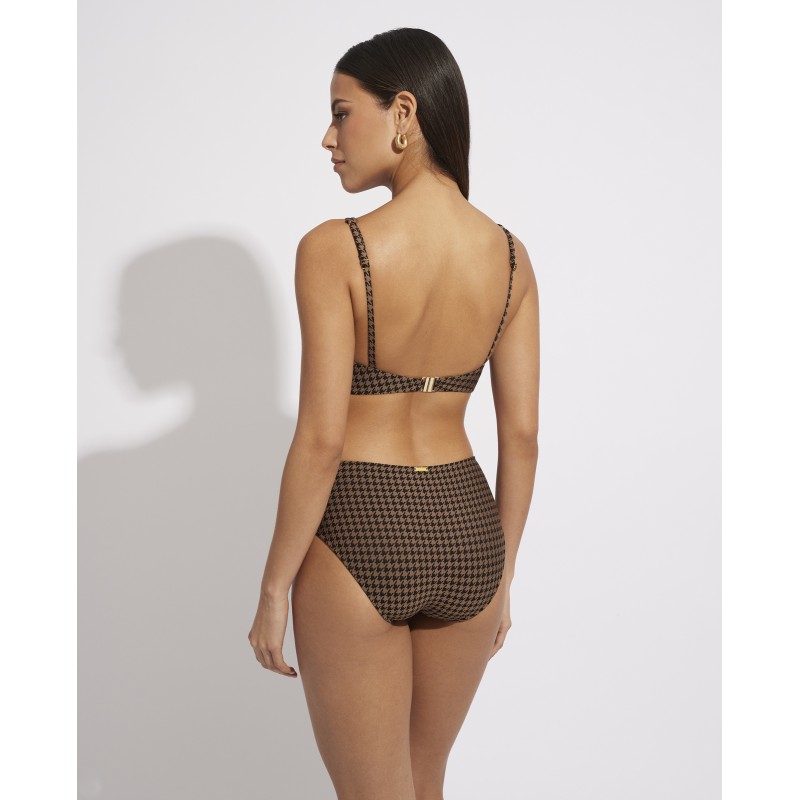 Cueca de biquíni de cintura alta com corte clássico. Seu design elegante e retrô lhe dará um toque de sofisticação e glamour que irá destacar seu estilo único neste verão.